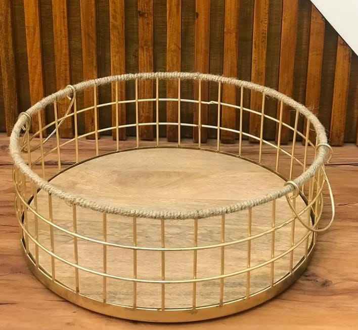 ตะกร้าลวดโลหะสำหรับใส่เครื่องดื่มในบ้านทรงรีสีทอง