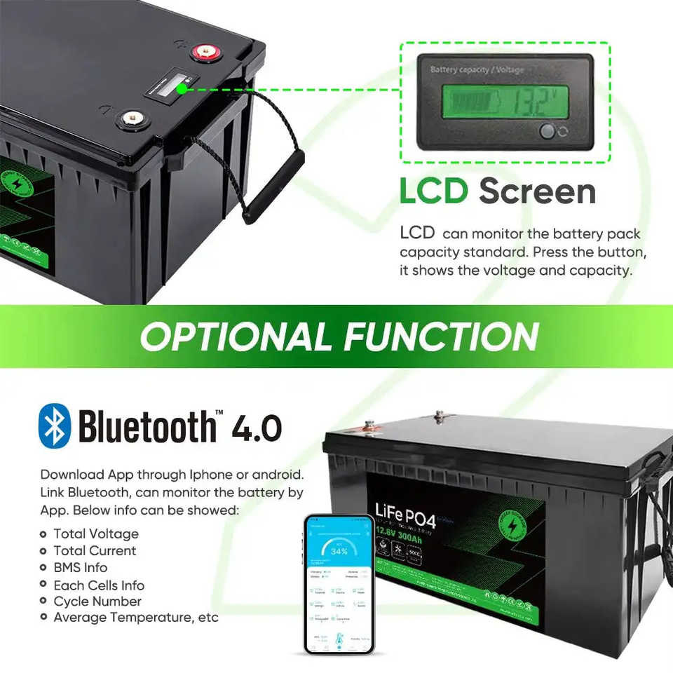 แบตเตอรี่ลิเธียมไอออน 12V 200Ah สำหรับใช้ในบ้าน สำหรับเก็บพลังงาน ความจุ 10 กิโลวัตต์ชั่วโมง พร้อมระบบโซลาร์เซลล์แบบแยกส่วน Lifepo4 300ah