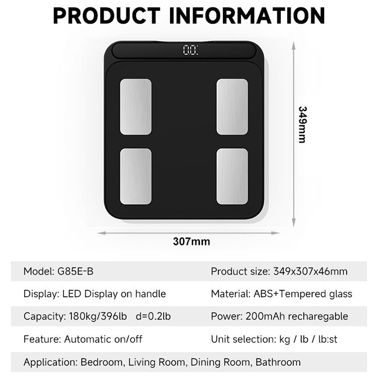 ชื่อผลิตภัณฑ์:เครื่องชั่งน้ำหนักดิจิตอล วัดไขมันในร่างกาย สำหรับใช้ในบ้าน