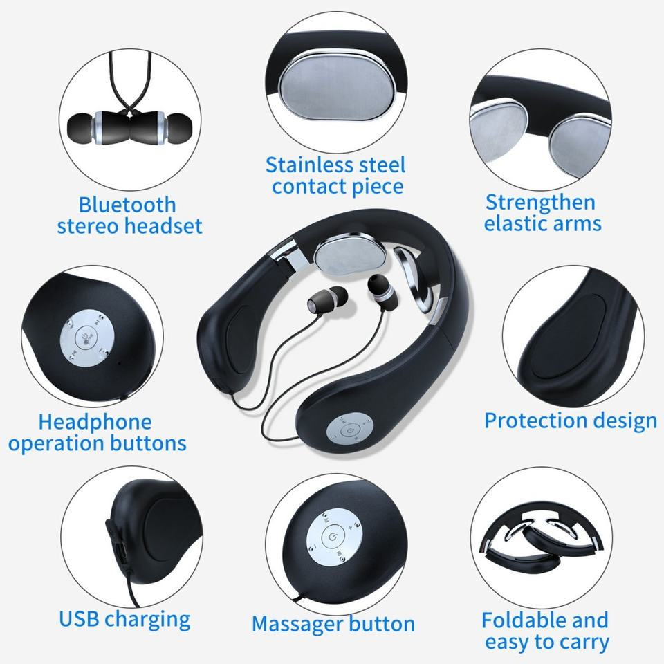 เครื่องนวดคอไฟฟ้า 2 in 1 สำหรับใช้ในบ้าน แบบไร้สาย พร้อมหูฟังนวดคอ
