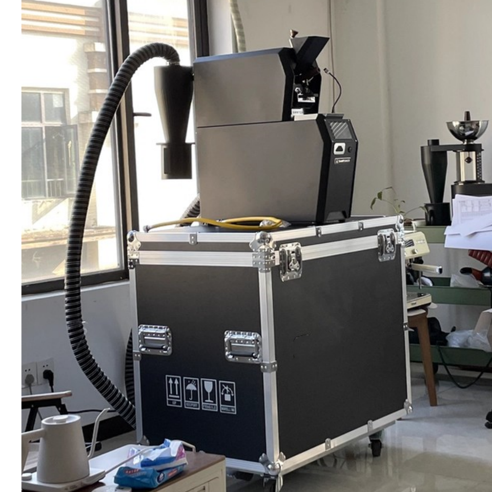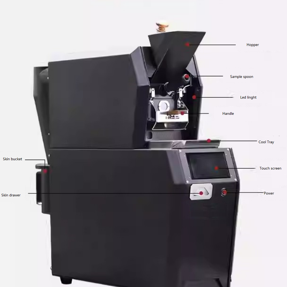 เครื่องคั่วกาแฟแบบใช้ลมร้อนและไฟตรงครึ่งหนึ่งครึ่งหนึ่งสำหรับใช้ในครัวเรือน ความจุ 0.21.2 กก. กำลังไฟ 600 วัตต์ เวลาคั่ว 5-10 นาที