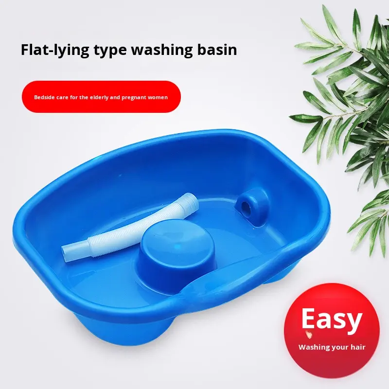 อ่างสระผมพลาสติกแบบแบนสำหรับใช้ในบ้าน เหมาะสำหรับการสระผมในห้องน้ำ ผู้หญิงหลังคลอด หญิงตั้งครรภ์ ผู้ป่วยติดเตียง และผู้สูงอายุ