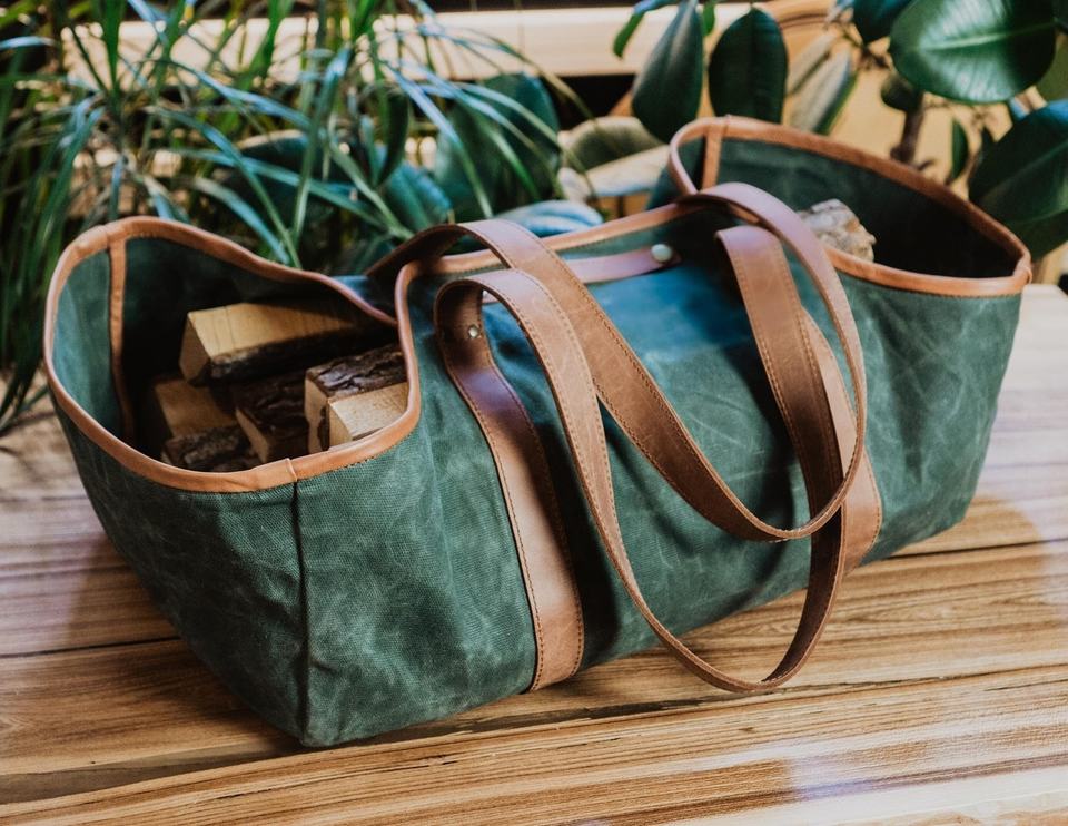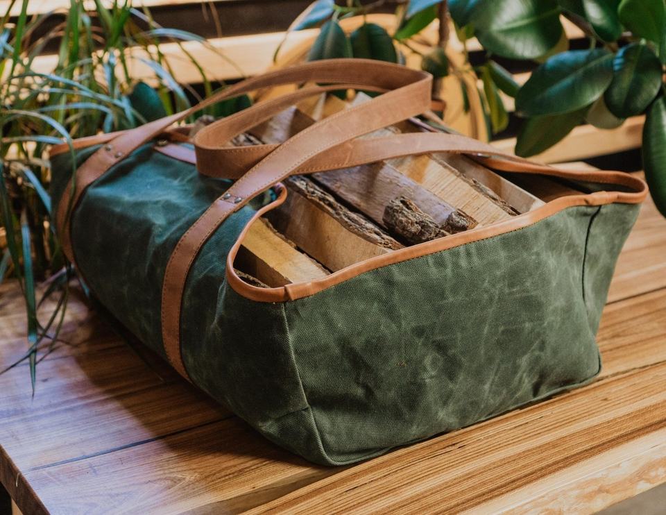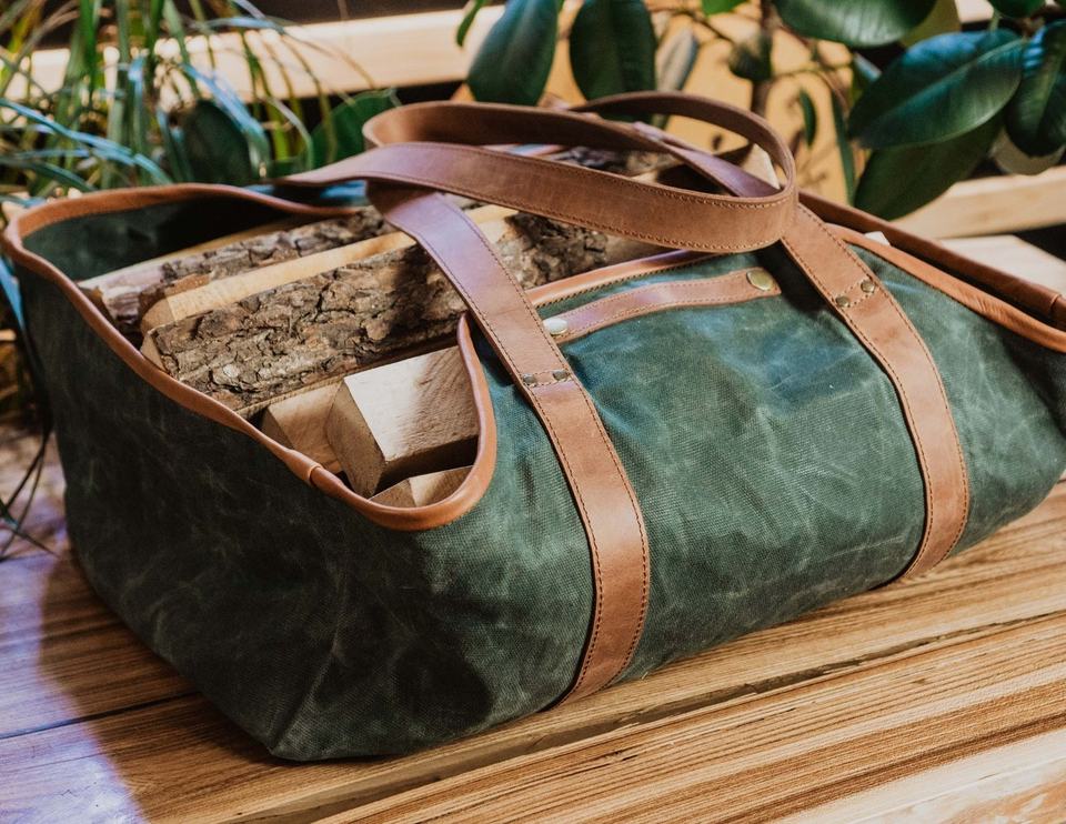 ที่ใส่ท่อนไม้ฟืนทำจากหนังผ้าใบเคลือบแว็กซ์สำหรับตกแต่งบ้าน LLR-0039เตาผิง