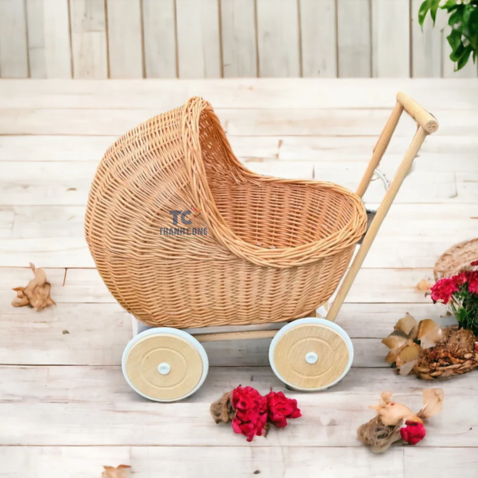 รถเข็นเด็กเล่นหวายไม้สานสำหรับเด็กบ้านของเล่นรถเข็นเด็กเล่นบ้านสำหรับเด็กอายุ2ถึง4ปีผู้จำหน่ายหวายจากเวียดนาม
