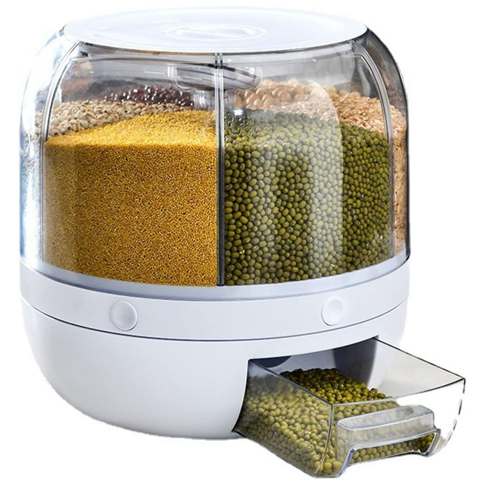 ถังข้าวแบบหมุนได้ภาชนะเก็บอาหารแห้ง6ช่องทำจากพลาสติกใสใช้ในบ้านและห้องครัว