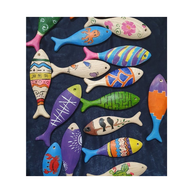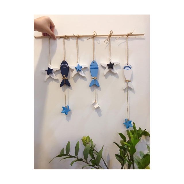 รูปปั้นปลาทำจากไม้แกะสลักด้วยมือใช้สำหรับตกแต่งบ้านแบบเรียบง่ายวิลล่าริมชายหาดหรือร้านอาหารริมทะเล