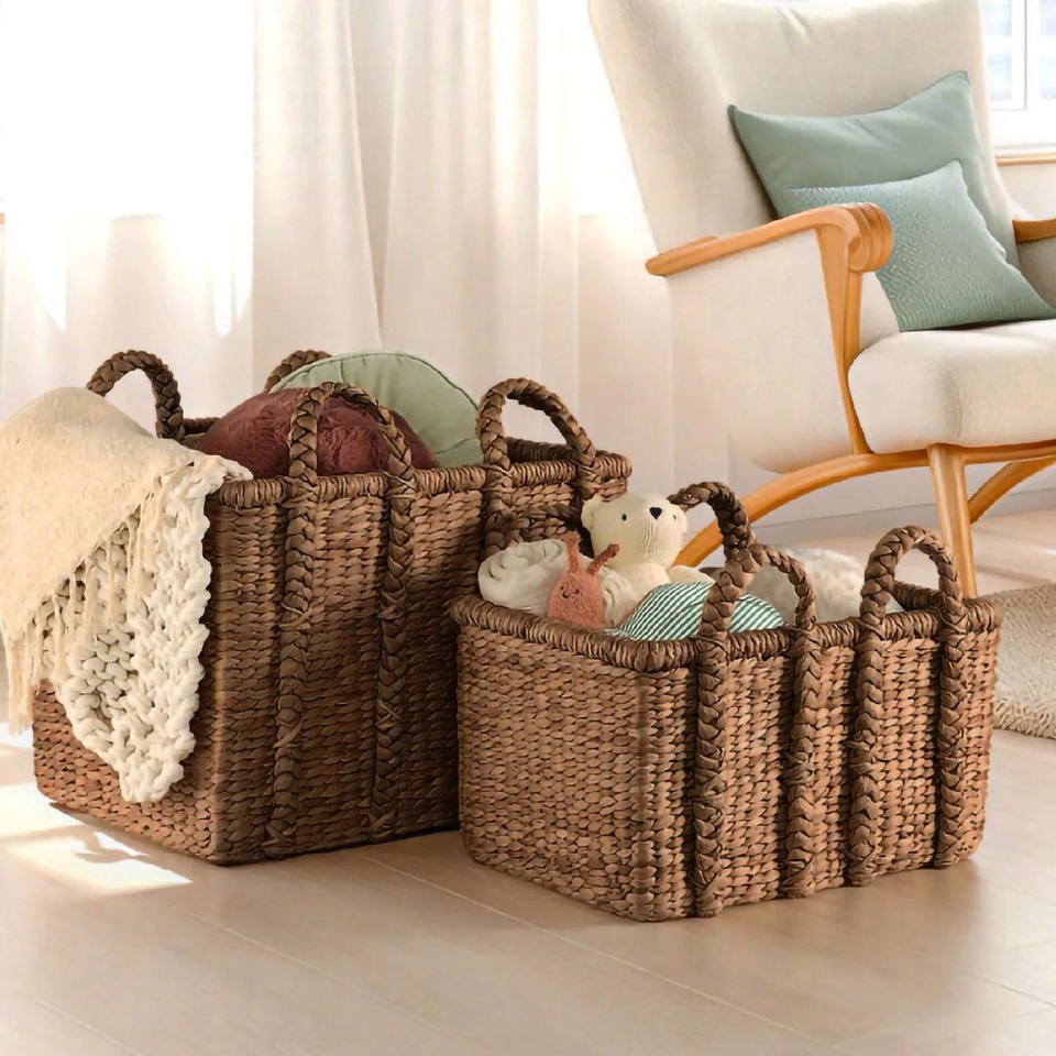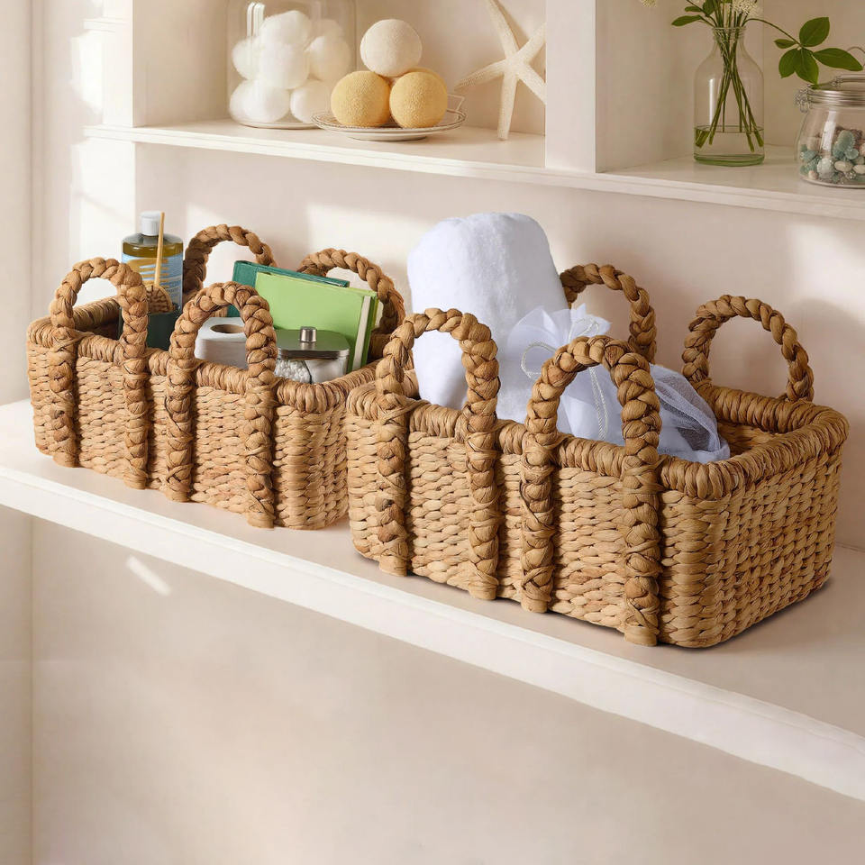 กระเป๋าใส่ตะกร้าผักตบชวาสำหรับจัดระเบียบบ้านตะกร้าใส่ของเป็นมิตรต่อสิ่งแวดล้อม