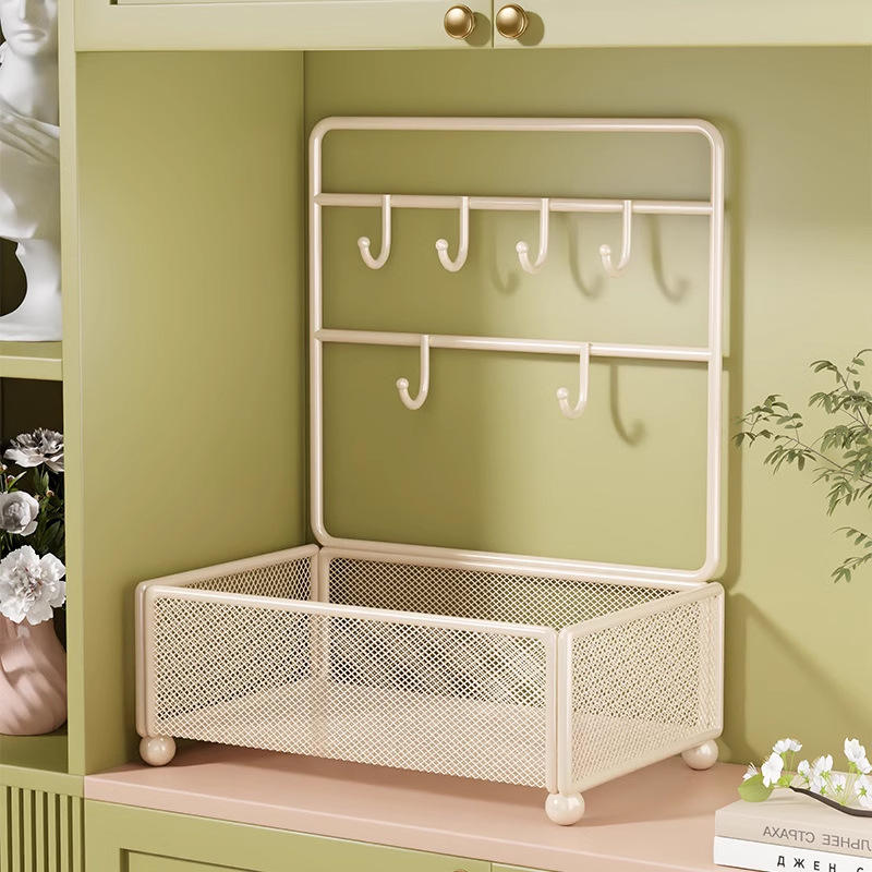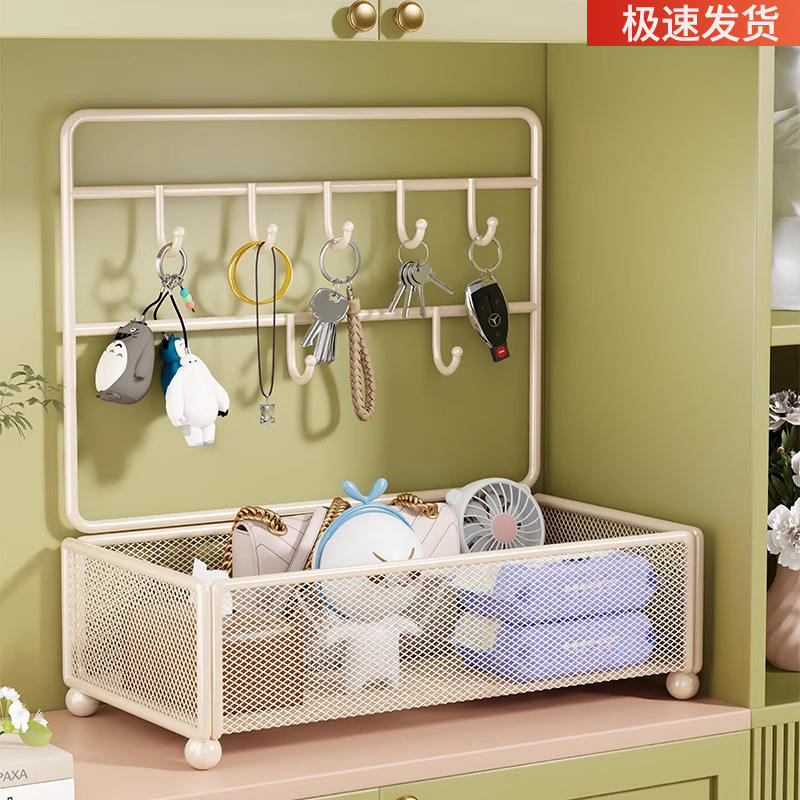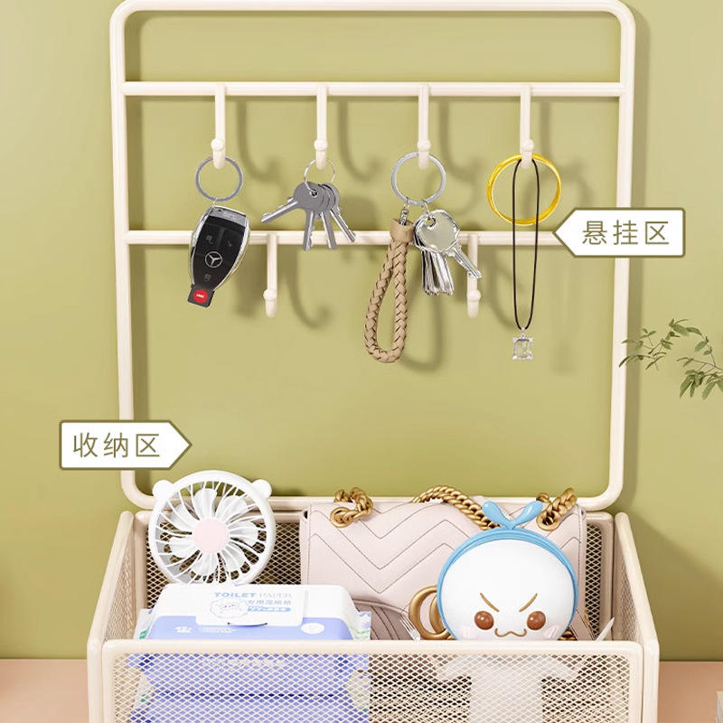 ที่เก็บกุญแจติดผนัง HomeKey รูปทรงสี่เหลี่ยมพร้อมตะขอและตะกร้า สำหรับจัดระเบียบทางเข้าบ้าน โต๊ะทำงาน และการเดินทาง