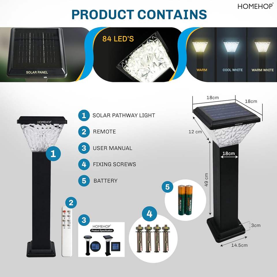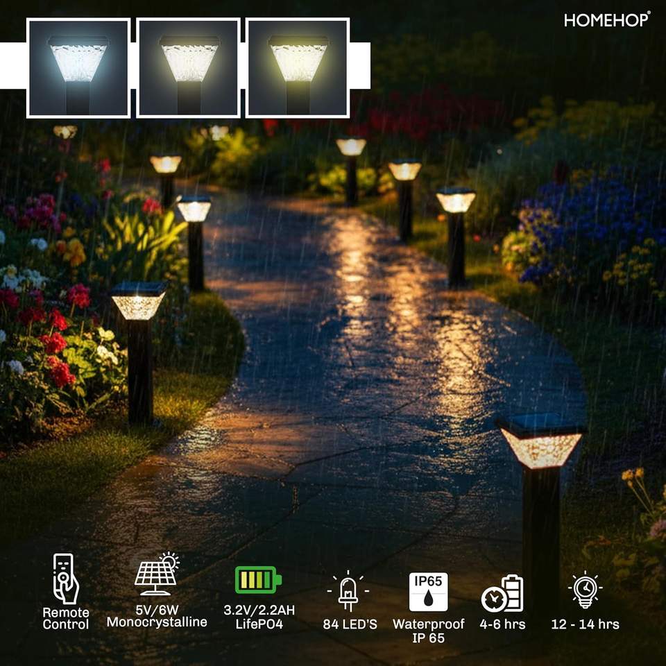 โฮมฮอปอลูมิเนียมไฟพลังงานแสงอาทิตย์ตกแต่งสวนกลางแจ้ง 84 LED กันน้ำไร้สายโคมไฟทางเดินสำหรับลานบ้านภูมิทัศน์ลานบ้าน