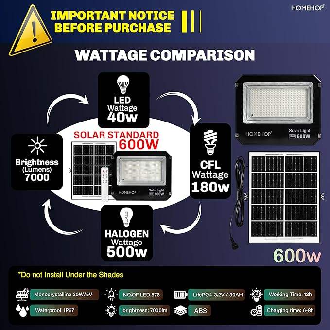 ไฟโซลาร์โฮมฮอปสำหรับภายนอกบ้าน 600W ไฟ LED กันน้ำ ระบบอัตโนมัติ ไร้สาย ติดผนัง สำหรับสวน ระเบียง ลานบ้าน และทางเดิน