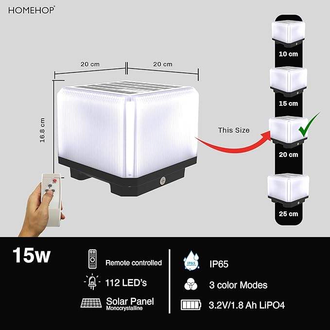 โคมไฟโซลาร์เซลล์แบบติดตั้งภายนอกอาคาร กันน้ำ 112 LED สำหรับตกแต่งประตูรั้ว สวน บ้าน กำแพงบ้าน