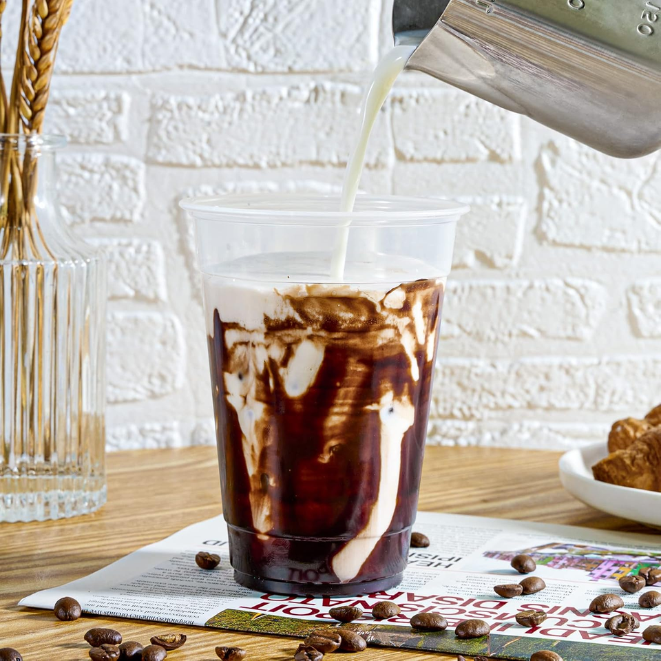 แก้วเย็นแบบใช้แล้วทิ้ง Homelink/Home Richfull ป้องกันการรั่วซึม ย่อยสลายได้ ผลิตจาก PET/PLA บรรจุ 50 ใบ ปราศจากสาร BPA และ PFAS เป็นมิตรกับสิ่งแวดล้อม รีไซเคิลได้