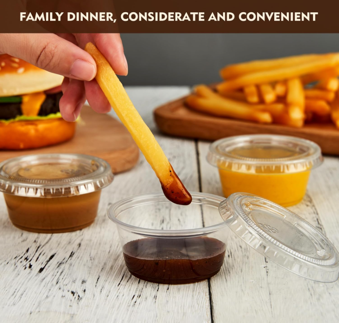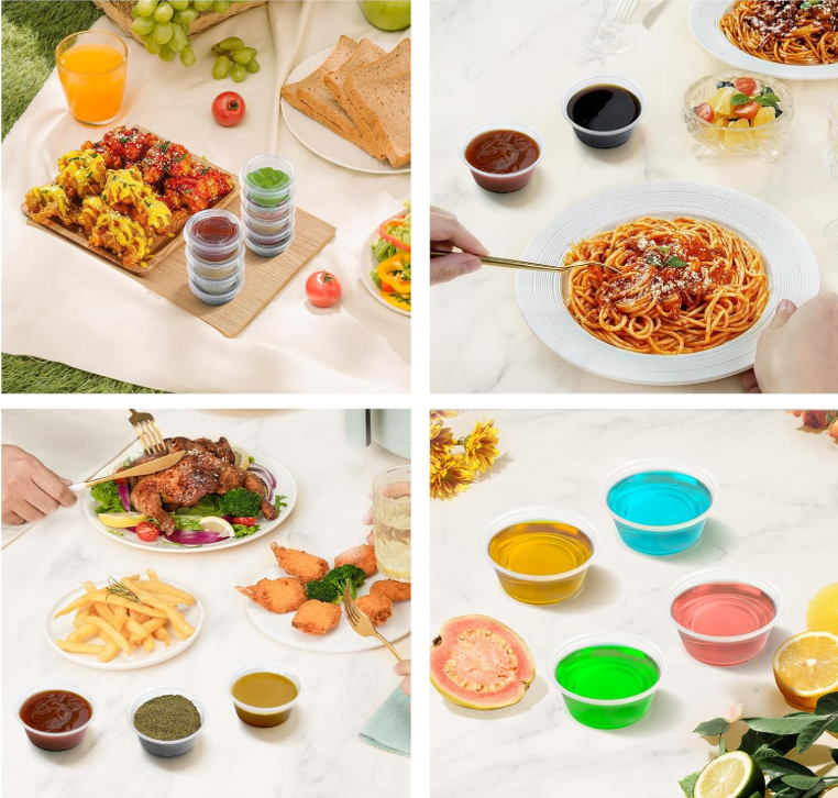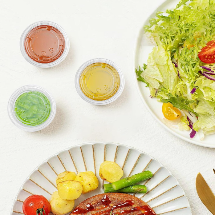 โรงงานโฮมลิงค์ไทยแลนด์ ผลิตภัณฑ์ใส ขนาด 2 ออนซ์ 3.25 ออนซ์ 5.5 ออนซ์ ภาชนะพลาสติก PET/PS แบบใช้แล้วทิ้ง สำหรับร้านอาหาร ขนาดเล็ก สำหรับใส่ขนม ซอส พร้อมฝาปิด