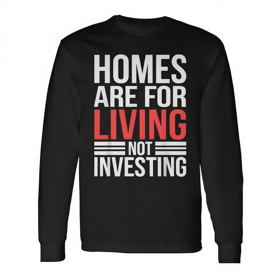บ้านมีไว้เพื่ออยู่อาศัย ไม่ใช่เพื่อลงทุน เสื้อยืดแขนยาวพร้อมข้อความเชิญชวน