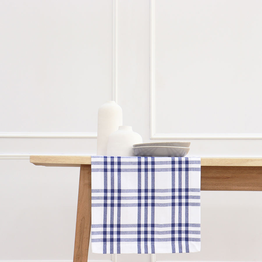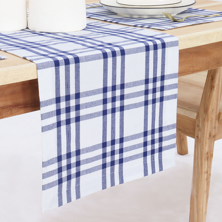 Homestead โต๊ะวิ่งผ้าฝ้าย100% สไตล์คลาสสิกสไตล์โมเดิร์นสำหรับบ้านไร่ลายตารางหมากรุกสีฟ้าขาวขนาด14x108นิ้วสำหรับใช้ในบ้าน-สำหรับฤดูใบไม้ผลิ