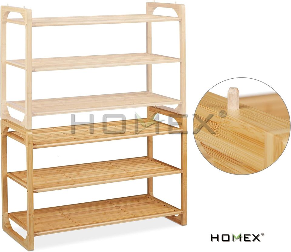 Homex | ชั้นวางรองเท้าแบบวางซ้อนกันได้ชั้นวางรองเท้าจอร์แดนไม้ไผ่ธรรมชาติ3ชั้นสำหรับใส่รองเท้า