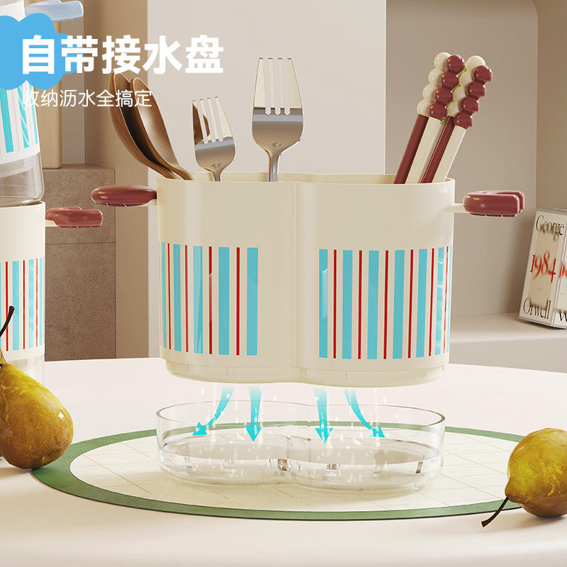 ที่วางตะเกียบแบบสองช่องพร้อมถาดรองน้ำหยด รูปทรงสี่เหลี่ยม อเนกประสงค์ สำหรับจัดเก็บบนเคาน์เตอร์