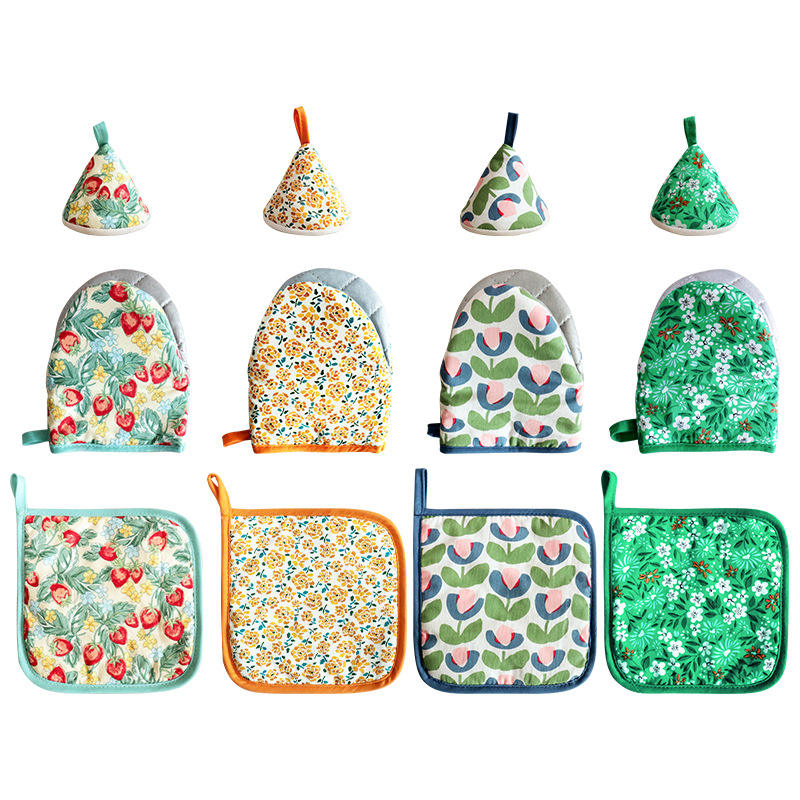 ถุงมือกันความร้อน Homey ขนาด 14x18 ซม. ลายพิมพ์รูปพืช สำหรับจับฝาหม้อเคลือบและหม้อตุ๋น