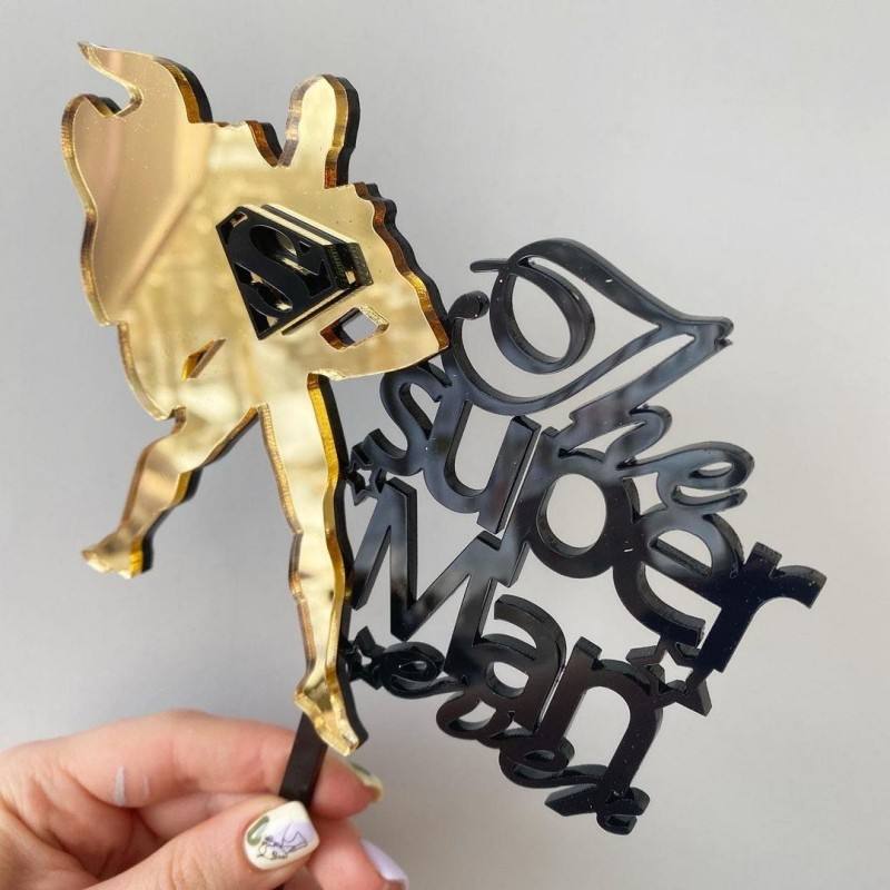 ท็อปเปอร์เค้กอะคริลิค รูปน้ำผึ้งและน้ำตาลหวาน ตกแต่งเค้กวันเกิดคุณพ่อสุดยอด สำหรับวันพ่อ