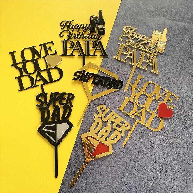 ท็อปเปอร์เค้กอะคริลิค รูปน้ำผึ้งและหวานๆ สุขสันต์วันเกิด พ่อ รักคุณ พ่อ ซุปเปอร์แด๊ด ของตกแต่งเค้กสำหรับวันพ่อและวันเกิด