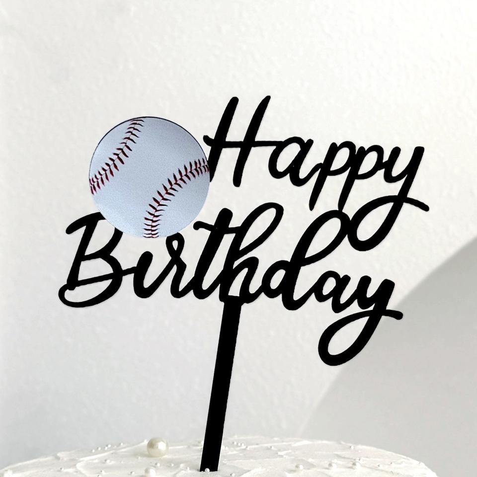 ท็อปเปอร์เค้กอะคริลิค ลายฮันนี่แอนด์สวีทเนส รูปเบสบอล สุขสันต์วันเกิด หนา 1.3 มม. สไตล์อินสตาแกรม สำหรับตกแต่งงานวันเกิด