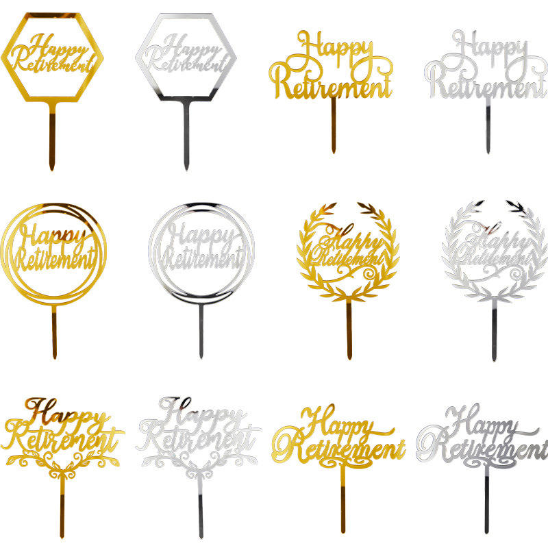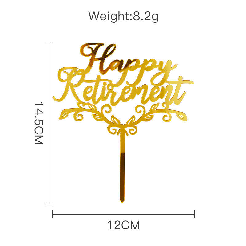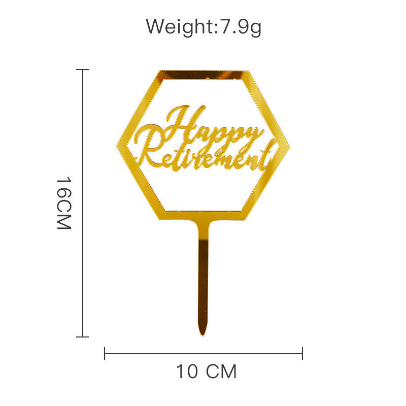 ท็อปเปอร์เค้กอะคริลิค รูปน้ำผึ้งและน้ำหวาน ขนาด 13 ซม. สีทอง สำหรับตกแต่งเค้กในงานเลี้ยงเกษียณอายุ