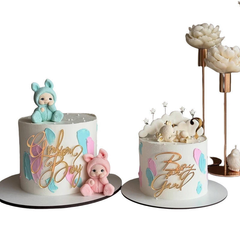 ท็อปเปอร์เค้กอะคริลิค รูปเด็กผู้หญิงหรือเด็กผู้ชาย สีทอง สำหรับตกแต่งงานเลี้ยงฉลองเบบี้ชาวเวอร์ ตกแต่งหน้าเค้ก