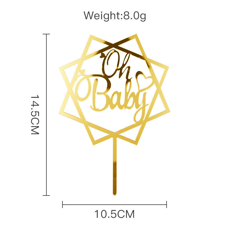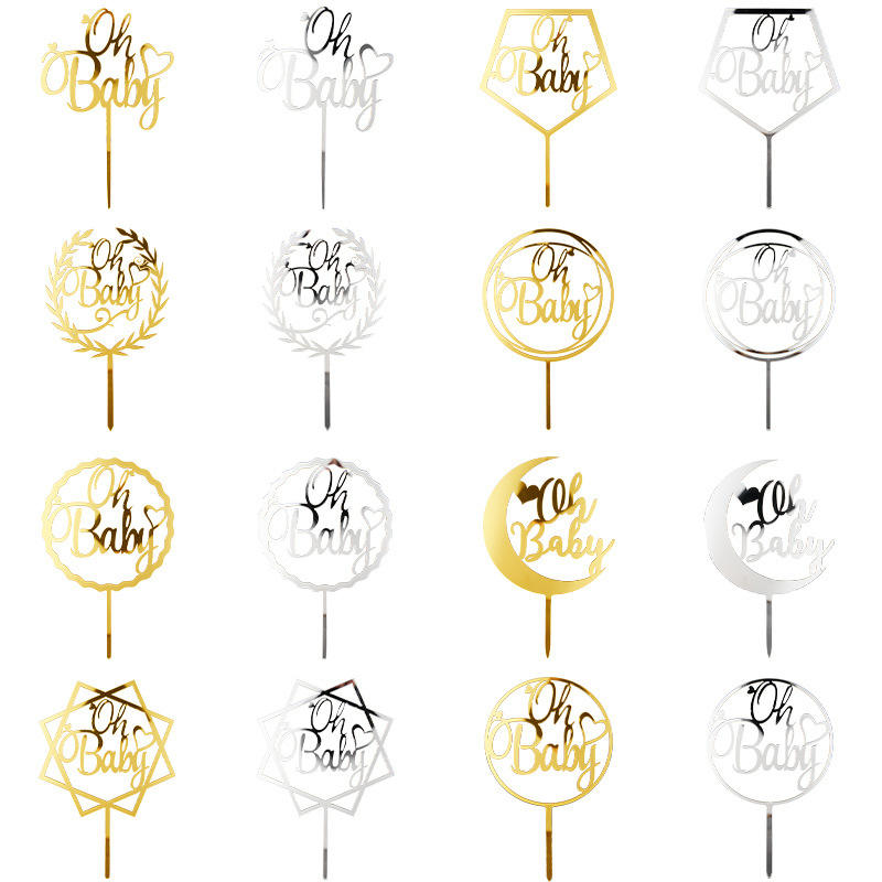 ท็อปเปอร์เค้กอะคริลิค รูปน้ำผึ้งและน้ำหวาน โอ้ เบบี้ สีทอง สีเงิน สำหรับตกแต่งเค้กในงานเลี้ยงฉลองวันเกิดหรืองานเลี้ยงฉลองทารก