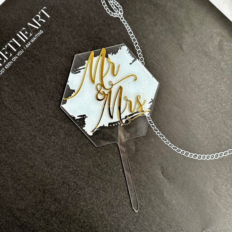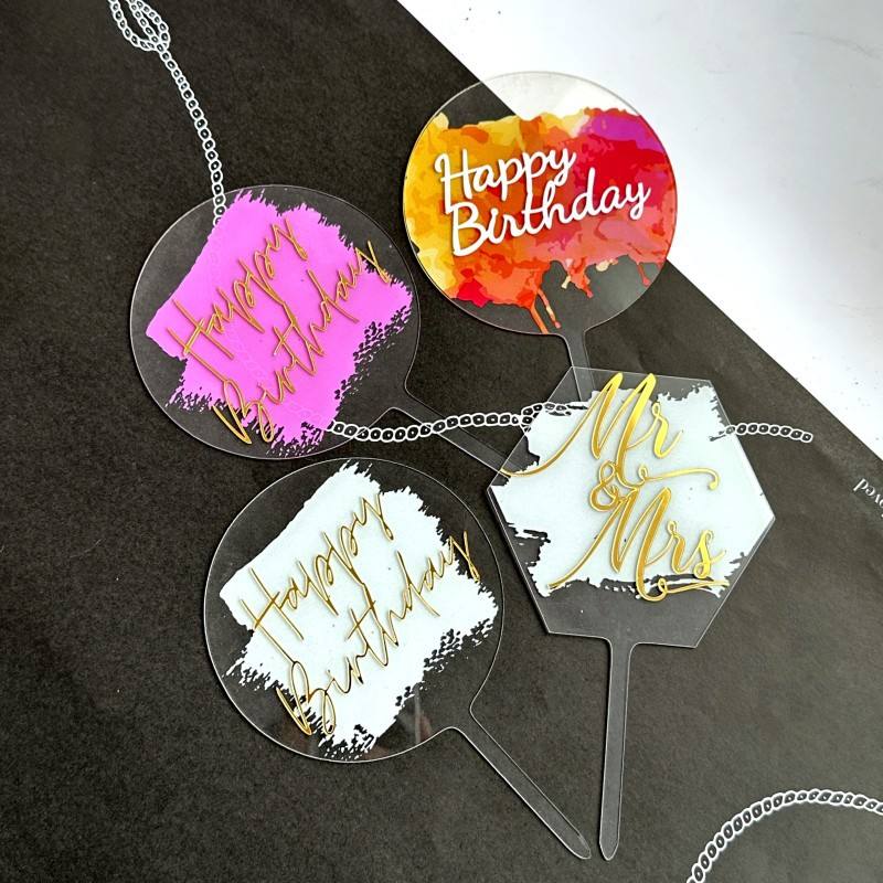 ท็อปเปอร์เค้กอะคริลิค ลายฮันนี่แอนด์สวีทเนส สุขสันต์วันเกิดคุณนายคุณนาย ของตกแต่งงานแต่งงาน งานวันเกิด แบบพิมพ์ UV