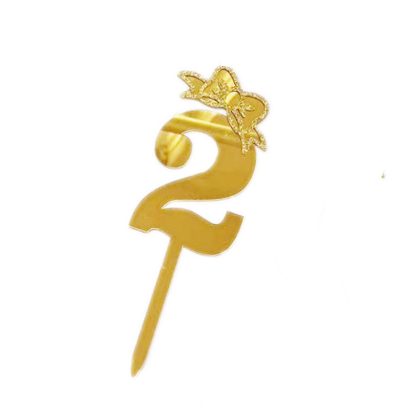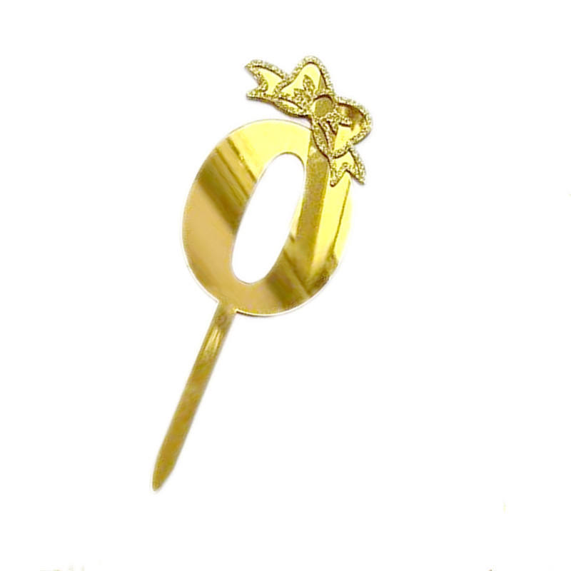 ตัวเลขอะคริลิคตกแต่งหน้าเค้ก 0-9 สีทองวิ้งๆ พร้อมโบว์ ประดับเค้กวันเกิด