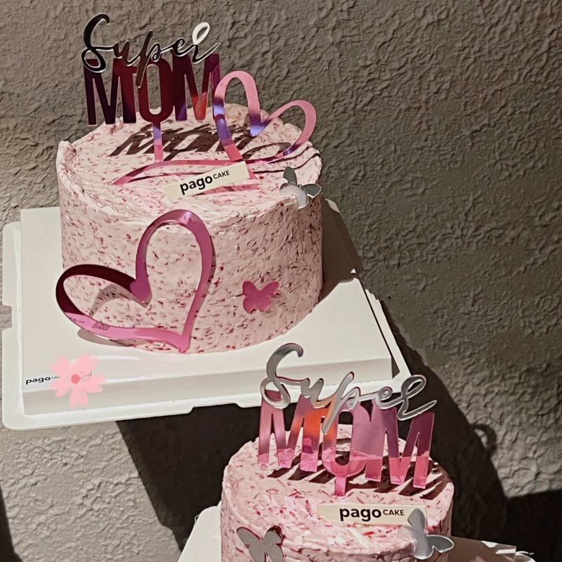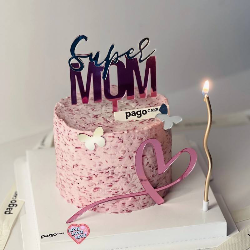 ท็อปเปอร์เค้กอะคริลิค รูปหัวใจผีเสื้อ น้ำผึ้งและความหวาน สำหรับตกแต่งเค้กวันแม่