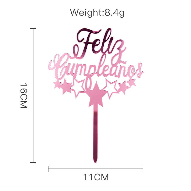 ท็อปเปอร์เค้กอะคริลิค รูปน้ำผึ้งและน้ำตาล ขนาด 16 ซม. สีทอง ตกแต่งงานวันเกิด Feliz Cumpleanos