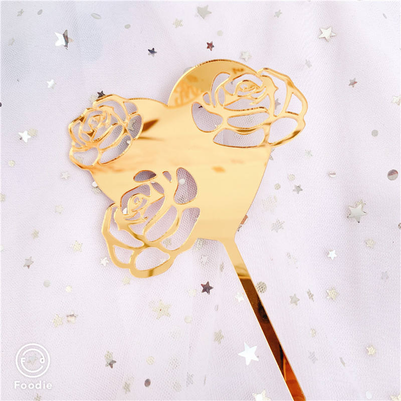 ท็อปเปอร์เค้กอะคริลิค รูปหัวใจกุหลาบ ประดับด้วยน้ำผึ้งและของหวาน สำหรับตกแต่งเค้กในวันวาเลนไทน์หรืองานแต่งงาน