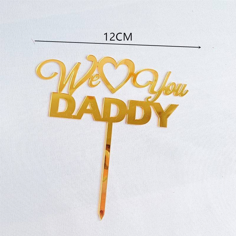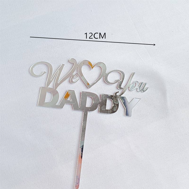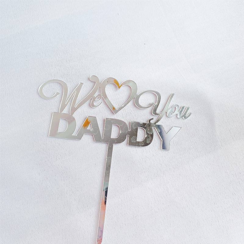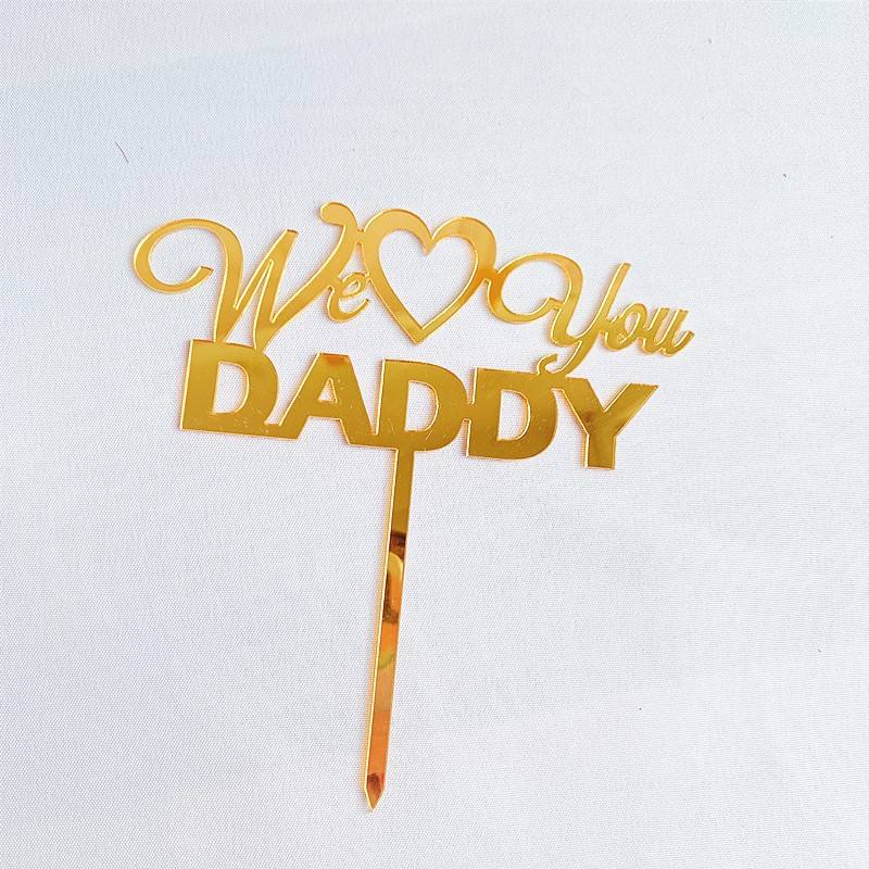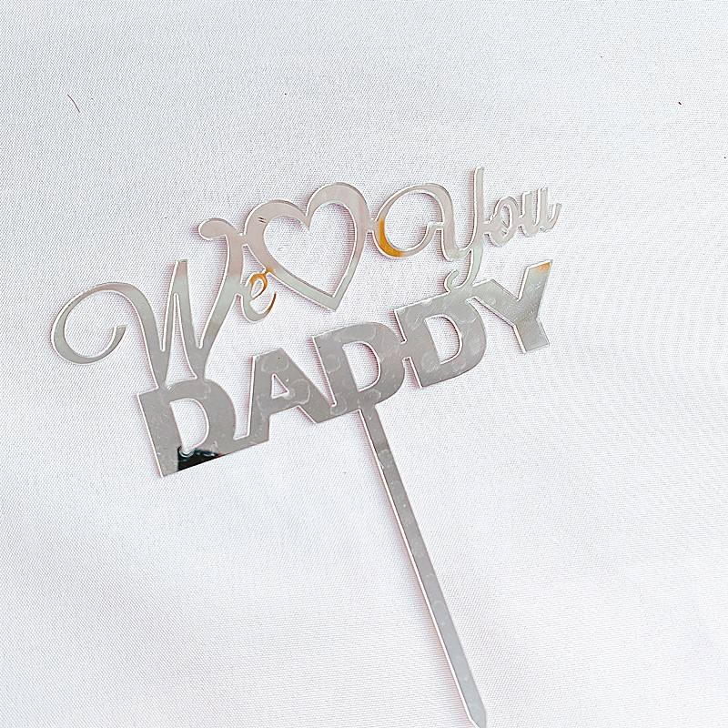 ท็อปเปอร์เค้กอะคริลิค รูปน้ำผึ้งและน้ำหวาน ข้อความ "We Love You Daddy" สีทอง/สีเงิน สำหรับตกแต่งเค้กวันพ่อ/วันเกิด