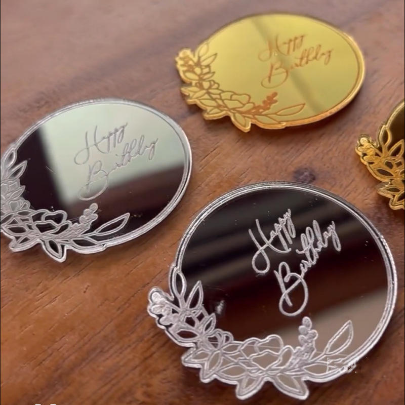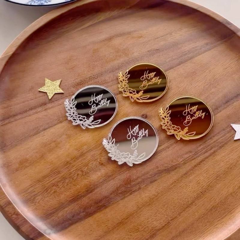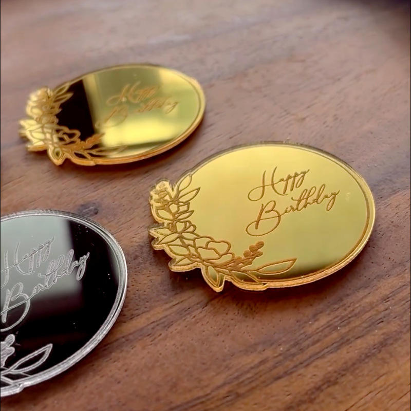 ท็อปเปอร์อะคริลิคตกแต่งเค้กน้ำผึ้งและรสหวาน ลายพวงดอกไม้ สุขสันต์วันเกิด ของตกแต่งเค้กสำหรับงานวันเกิด