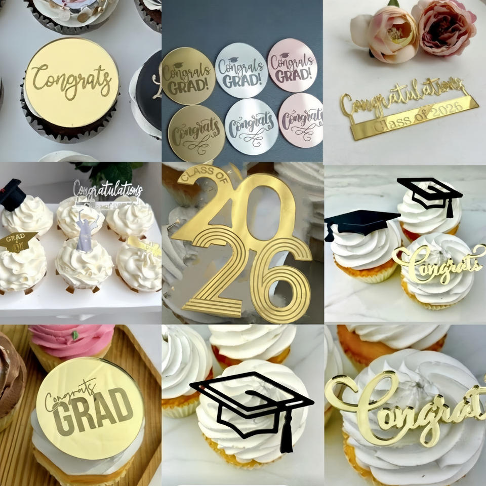 ท็อปเปอร์เค้กอะคริลิคตกแต่งรูปน้ำผึ้งและความหวาน สำหรับงานรับปริญญา ประจำปี 2026