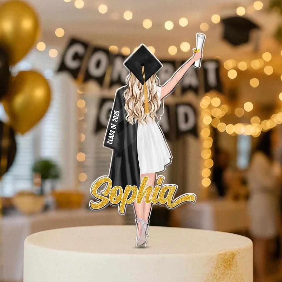 ท็อปเปอร์เค้กอะคริลิค รูปน้ำผึ้งและความหวาน สำหรับงานรับปริญญา ปี 2025 ตกแต่งงานปาร์ตี้นักเรียนหญิง พร้อมสลักชื่อตามสั่ง