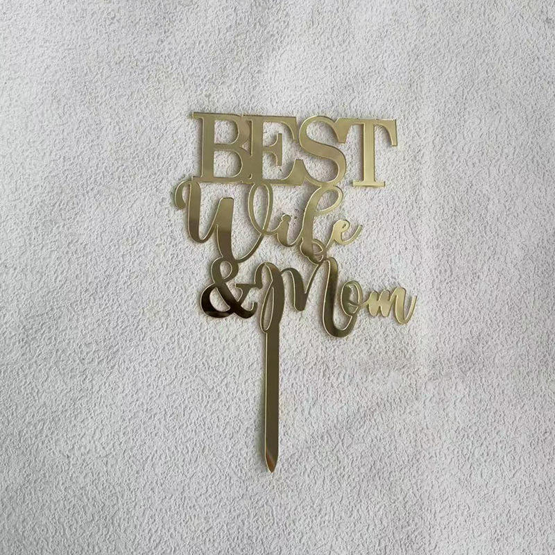 ท็อปเปอร์เค้กน้ำผึ้งและรสหวาน ตกแต่งด้วยโลหะสีทอง สำหรับภรรยาที่ดีที่สุด แม่ที่ดีที่สุด สามีที่ดีที่สุด พ่อที่ดีที่สุด สำหรับวันแม่ วันพ่อ