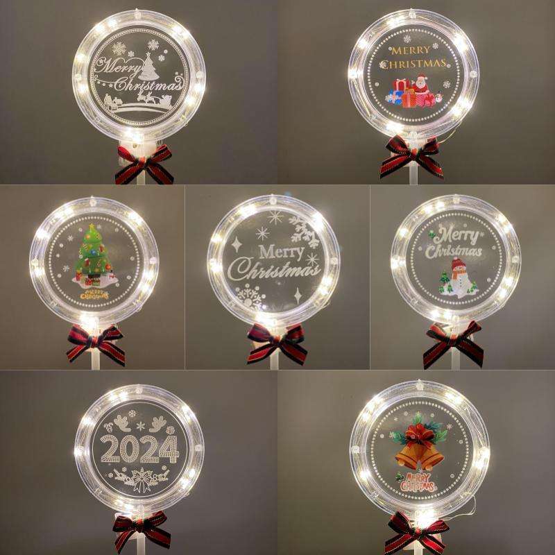 ท็อปเปอร์เค้กคริสต์มาสอะคริลิคพร้อมไฟ LED รูปน้ำผึ้งและหวานๆ ขนาด 9x18 ซม. สำหรับตกแต่งเค้ก