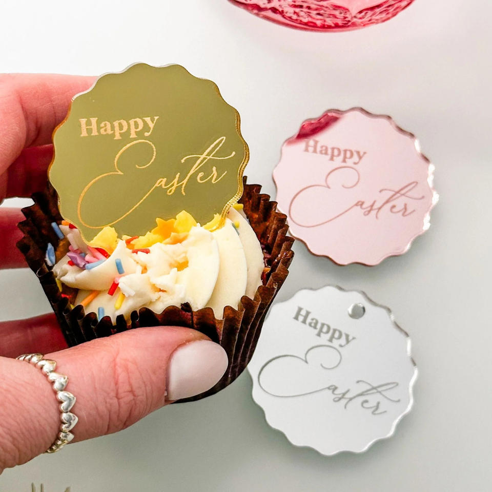 ที่ประดับเค้กอีสเตอร์รูปน้ำผึ้งและน้ำตาลหวาน ป้ายอะคริลิคแบบกระจกสีทอง เงิน โรสโกลด์ ชมพู ม่วง สำหรับตกแต่งงานปาร์ตี้