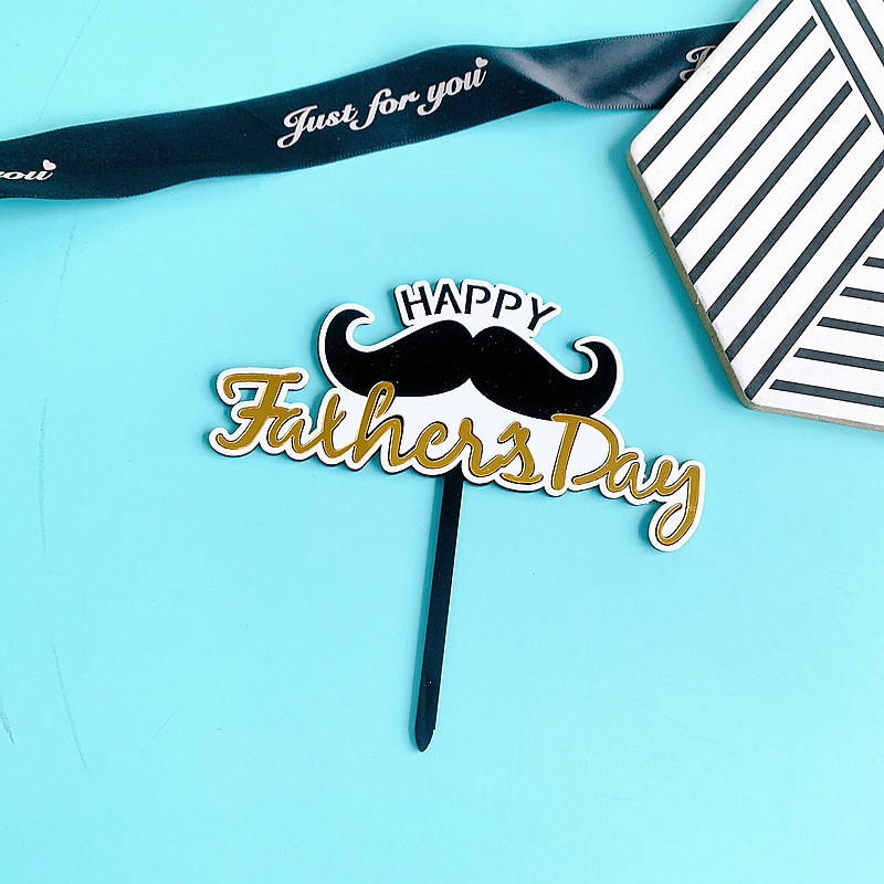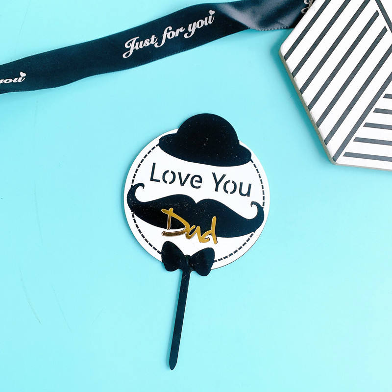 ของตกแต่งเค้กวันพ่อรูปน้ำผึ้งและของหวาน อะคริลิกสำหรับงานวันเกิด คุณพ่อ รักคุณ พ่อ หนวด โบว์ไท