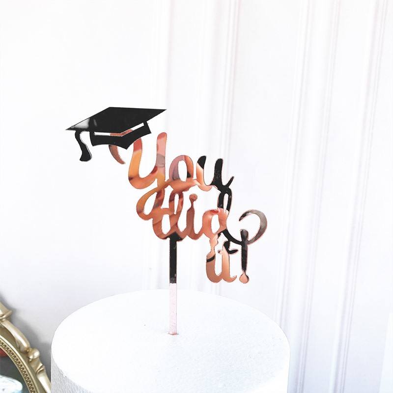 ของตกแต่งเค้กสำเร็จการศึกษา อะคริลิคสีทอง สีโรสโกลด์ รูปดอกกุหลาบ "คุณทำได้" สำหรับงานปาร์ตี้