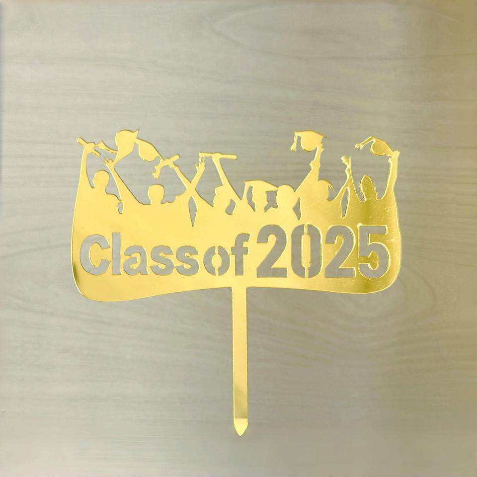 ท็อปเปอร์เค้กอะคริลิคสำหรับงานรับปริญญา ปี 2025 ลาย "น้ำผึ้งและความหวาน" พร้อมคำอวยพร "ขอแสดงความยินดีกับบัณฑิตรุ่นปี 2025" สำหรับตกแต่งเค้ก