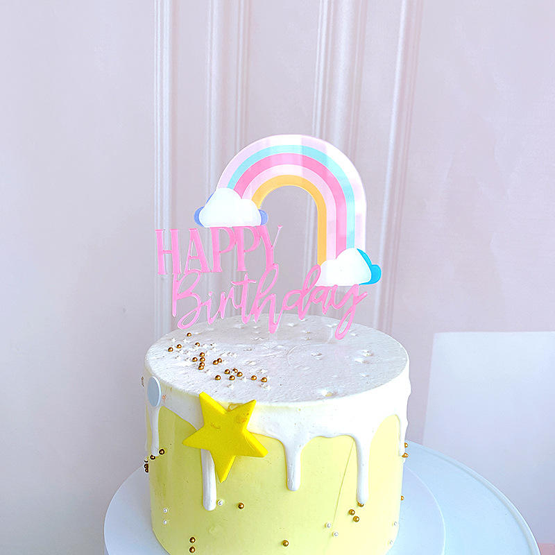 ท็อปเปอร์เค้กอะคริลิค รูปสายรุ้ง น้ำผึ้ง และความหวาน พร้อมเมฆตกแต่ง สำหรับอุปกรณ์ตกแต่งเค้ก