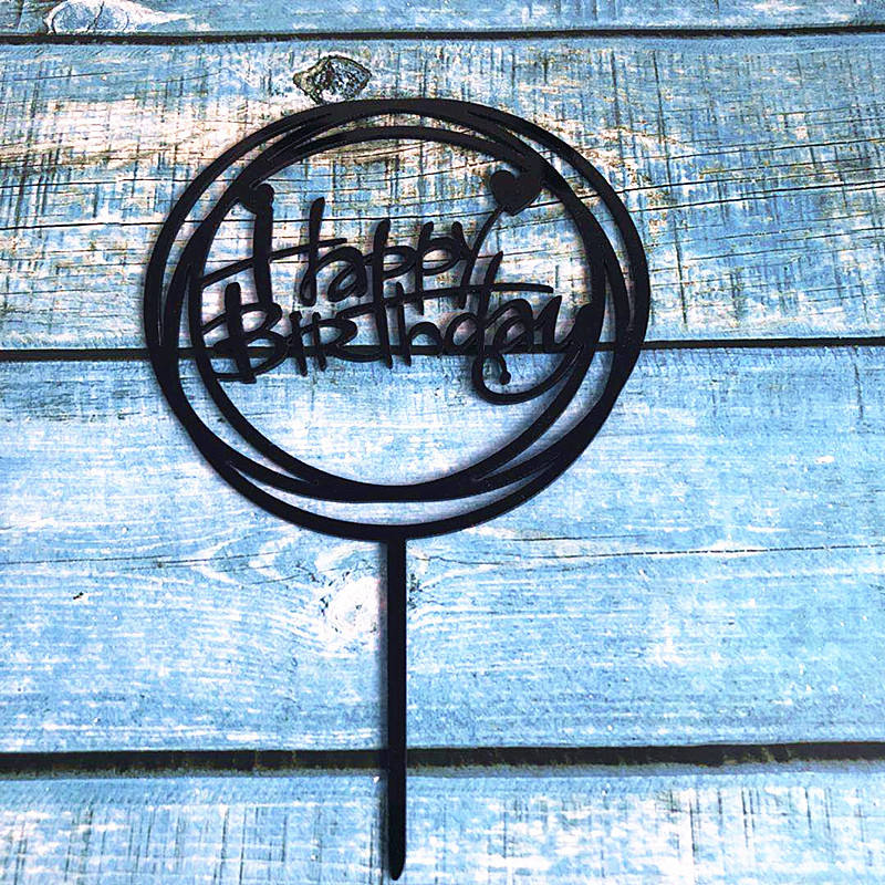 ท็อปเปอร์เค้กอะคริลิกรูปวงกลมลายดอกกุหลาบสีทอง เงิน ดำ น้ำเงิน ชมพู สำหรับตกแต่งงานวันเกิด พร้อมข้อความสุขสันต์วันเกิด