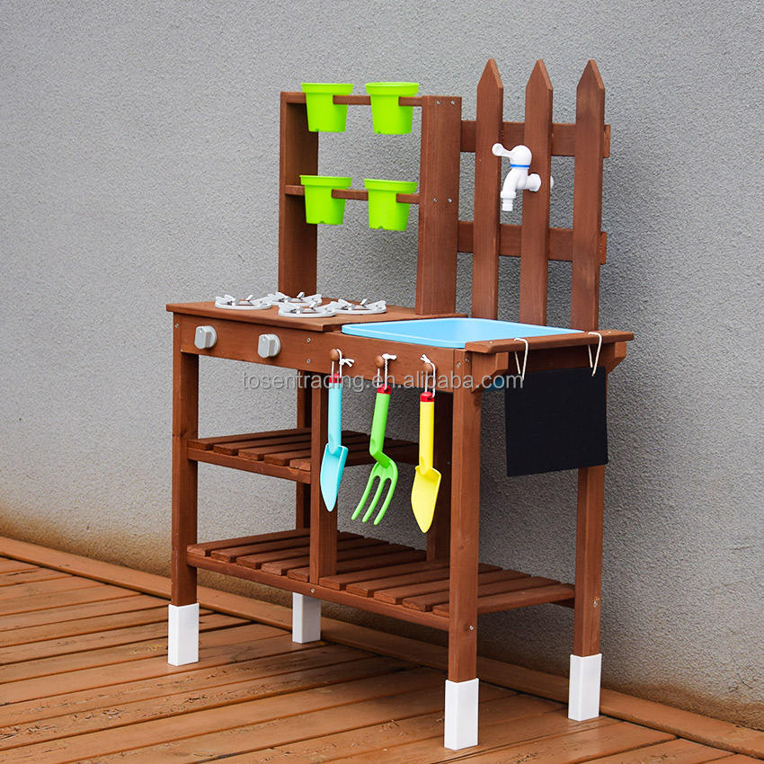 ชุดครัวโคลนน้ำผึ้งพร้อมอ่างล้างจาน เตาเล่น ตู้กดน้ำ และอุปกรณ์ทำสวน - ชุดครัวเล่นสำหรับเด็กในสวนหลังบ้านเพื่อความสนุกสนานกลางแจ้ง