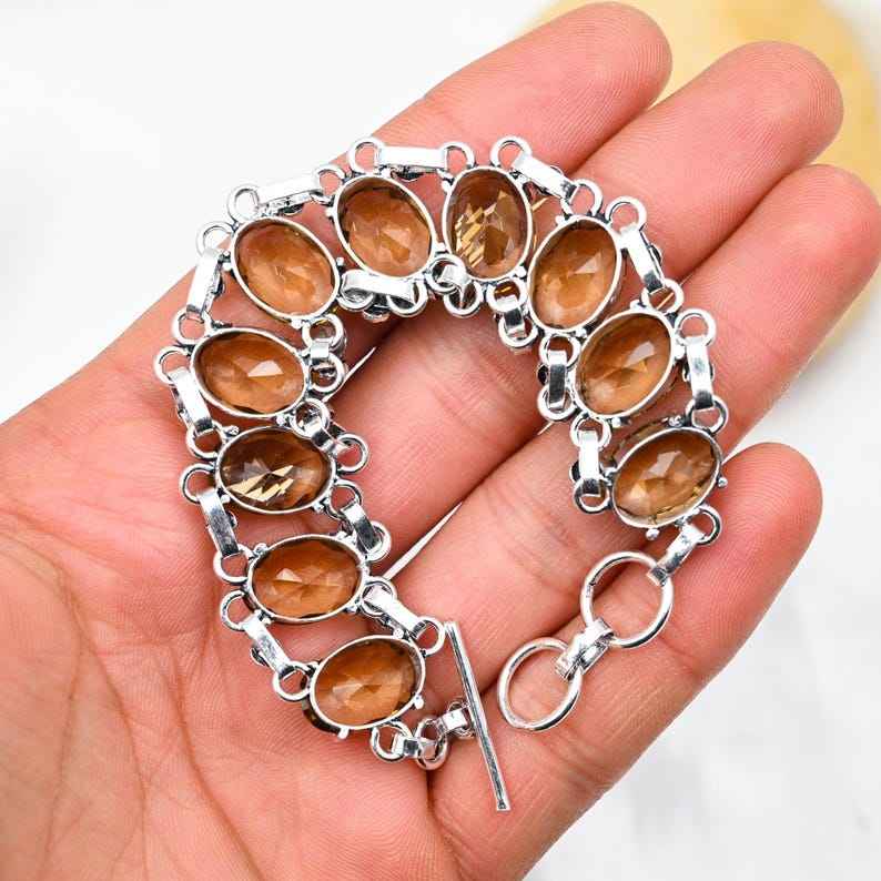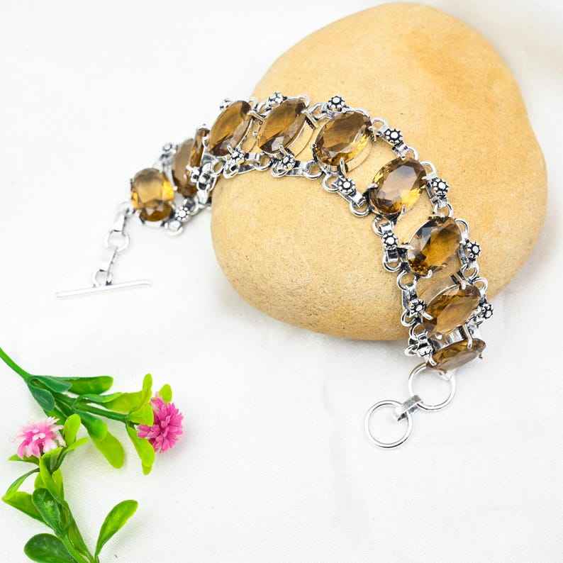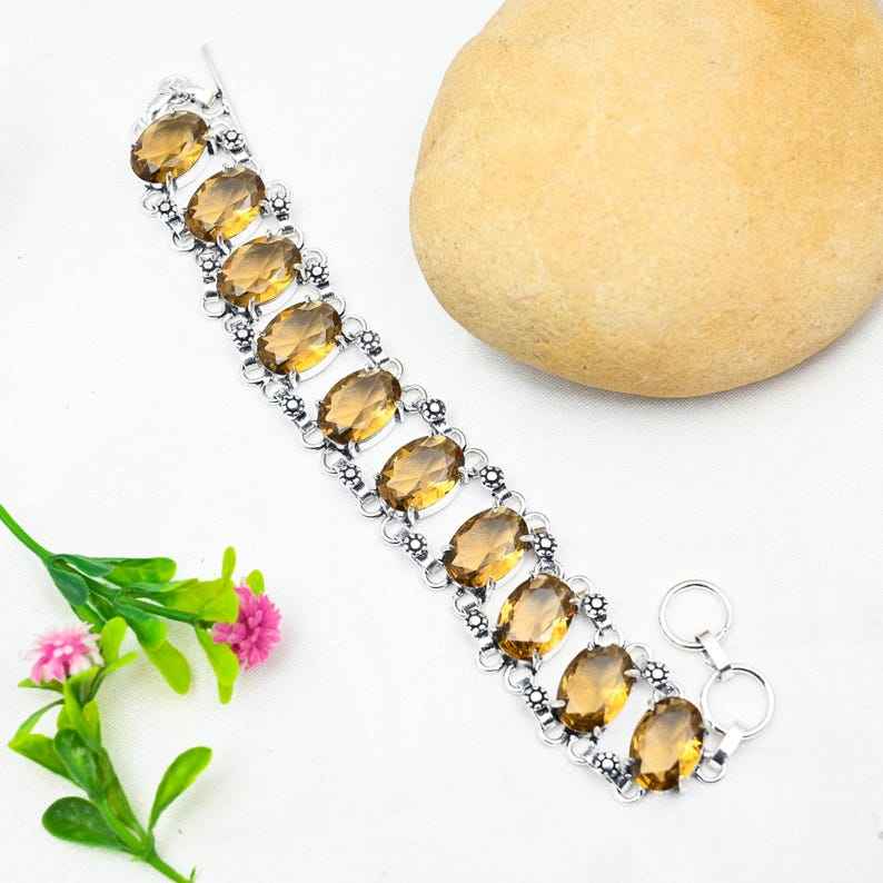 สร้อยข้อมือโทแพซสีน้ำผึ้ง เงินแท้ 925 ทำด้วยมือ เครื่องประดับเงิน สร้อยข้อมือพลอย ของขวัญวันเกิด วันแต่งงาน สำหรับเธอ