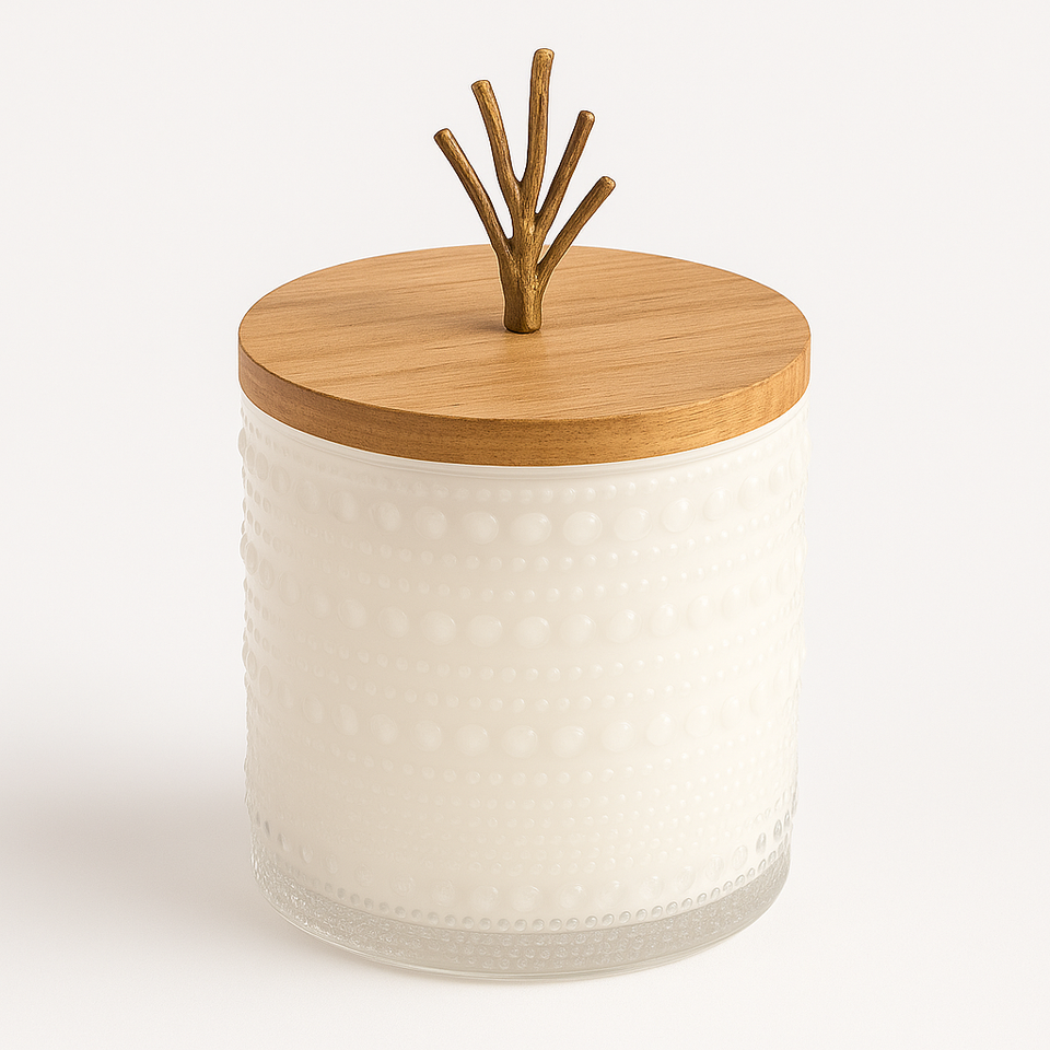 Honeybee ฝาเทียนทองเหลืองพร้อมโถแก้วลายจุดครีมและหม้อไม้ทำจากขี้ผึ้งถั่วเหลืองเทียนหอมที่ได้รับแรงบันดาลใจจากแมลงสำหรับทันสมัย