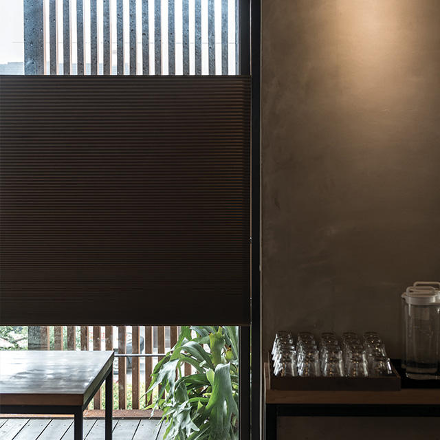 ม่านม้วนแบบรังผึ้งแนวตั้ง ป้องกันแสงแบบไร้สาย เปิดได้ทั้งด้านบนและด้านล่าง ผลิตจากผ้าโพลีเอสเตอร์ 100%