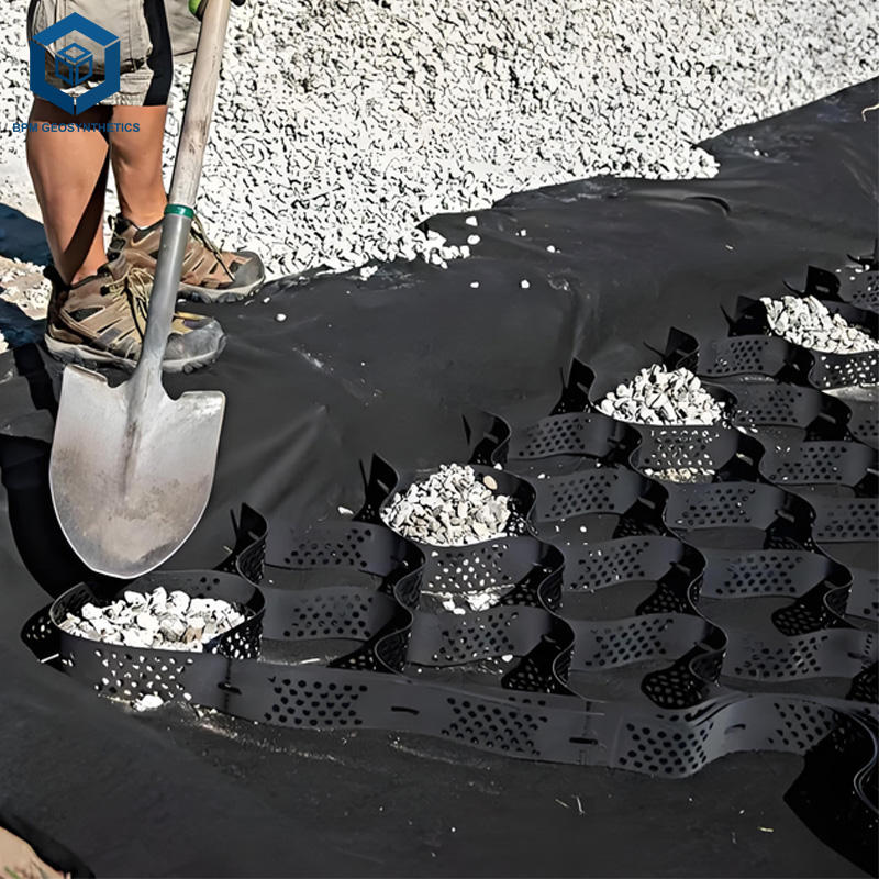 แผ่นตาข่ายรังผึ้งพลาสติกป้องกันการลาดตัวของพื้นดินแบบสามมิติสำหรับโครงการถนนในจอร์แดน
